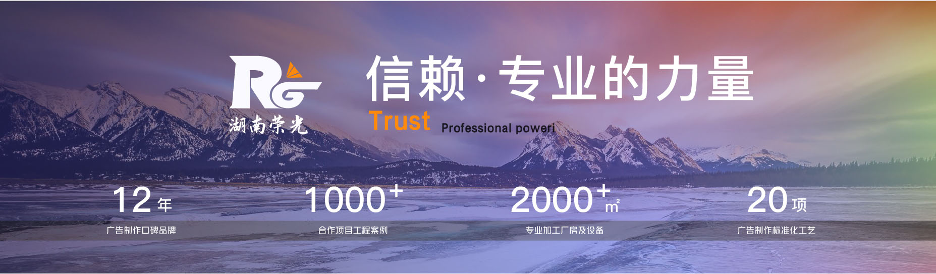 走進湖南榮光About Us湖南榮光公司是一家總部位于長沙的廣告公司,公司現(xiàn)有管理團隊技術骨干20余人,擁有專業(yè)的安裝隊伍及售前售后團隊、資深的文化墻設計、黨建文化設計和廣告標識設計團隊,F(xiàn)有廣告標識及發(fā)光字加工生產(chǎn)廠房2200平米,150平米標準化烤漆加工房。全自動發(fā)光字折彎機、雕刻機、激光切割機、平板UV設備等十余臺。同時具有強大的LED顯示屏供應鏈、為您企業(yè)的廣告投入,實現(xiàn)創(chuàng)新和快速反應,提供了有力保障。